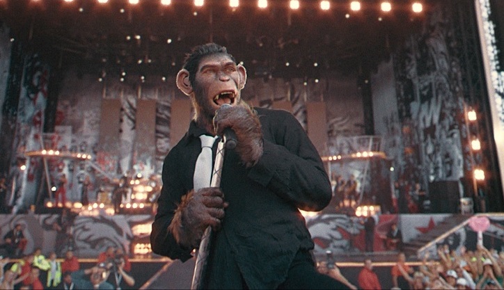 But, to address the primate in the room, why are audiences seeing a CGI chimpanzee? When asked by NME, Gracey cited ‘something that would be, from an audience point of view, more interesting‘ as the reason for the risky choice, arguing that ‘you see more of Rob in the monkey than you would if it was an actor playing him’. In a discussion between the director and Williams, the singer described himself as always being ‘a little less evolved‘ and feeling like he was ‘prancing and preening in front of the cameras’. Despite the initial shock of seeing the monkey’s eyes open for the first time on screen, many audience members seemed to cast its uniqueness to the wayside as they found themselves more deeply invested in the story. Praise for Gracey’s, albeit dicey, decision sees audiences applaud the seamless balance between naturalism and sensationalism as the film progresses, revealing the intimate way in which, even at his lowest, Williams is willing to recognise the inherent ridiculousness of his problems.