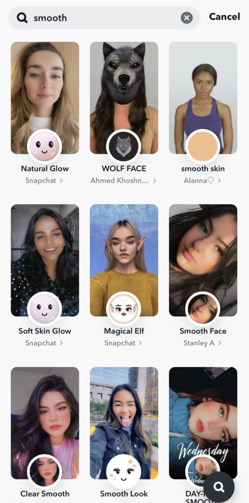 The sharing of appearance-focused photos that are often unrealistic and heavily edited, creates an impossible beauty standard, which makes women feel inferior and provides a want to change themselves. Social media users are able to apply filters to their face and body, and filters are heavily available on Snapchat, Instagram, and TikTok. On Snapchat, users are able to search a large database of filters using key words, such as smooth, which brings up numerous filters which blur pores and give the illusion of a brighter and completely blemish free face. Additionally, many people (4.6 million downloads in 2022) use Facetune to ‘improve’ their appearance in posts e.g. making their waist smaller, hair thicker, and teeth whiter.