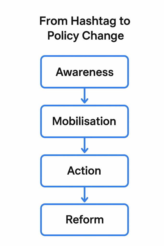 Social media activism is neither wholly effective nor entirely ineffective. Its true potential lies in its ability to spark awareness, amplify marginalised voices, and mobilise communities—but lasting change demands more than a viral moment. Movements like #BlackLivesMatter and #MeToo demonstrate that when digital visibility connects with real-world organising and legal advocacy, transformation becomes possible.