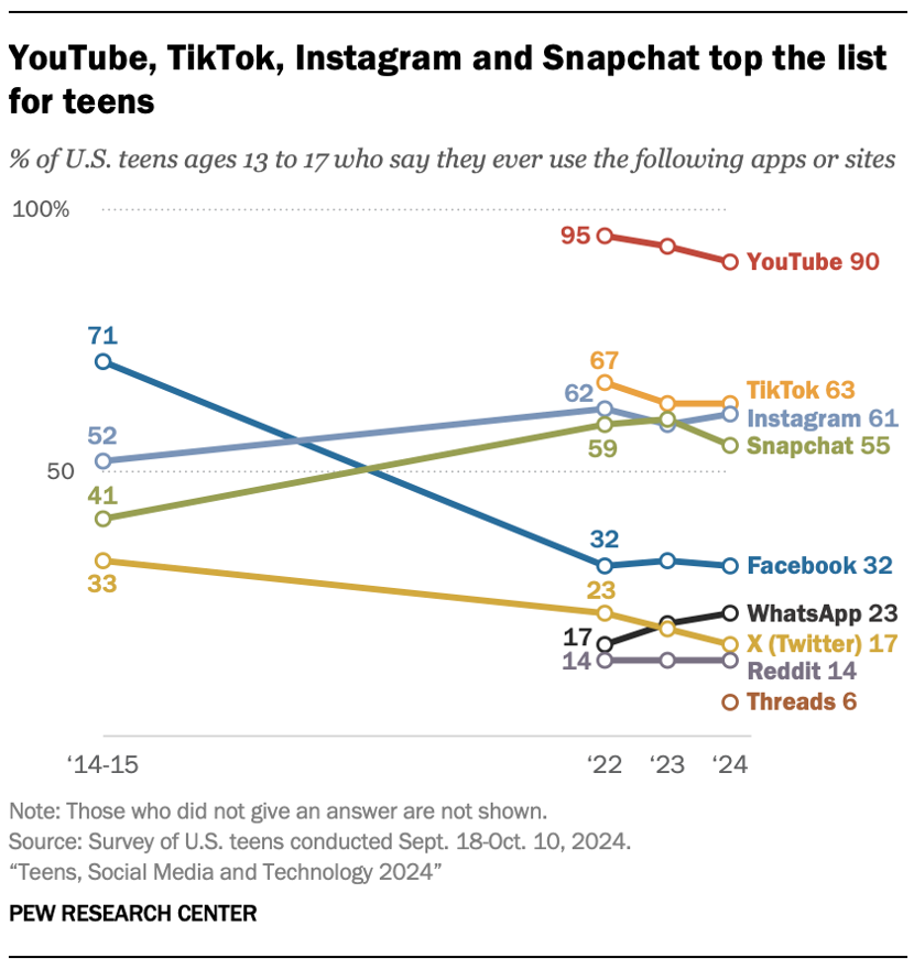 Pew Research Center. (2024, December 12). Teens, Social Media and Technology 2024. Pew Research Center; Pew Research Center. https://www.pewresearch.org/internet/2024/12/12/teens-social-media-and-technology-2024/