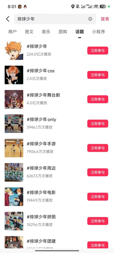 Tiktok screenshot – number of Haikyuu!! tags