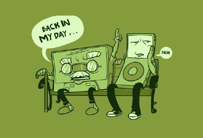 A representation of this arguement, with the older casette representing the nostalgic older generation, and the IPod representing the indifferent younger generation.